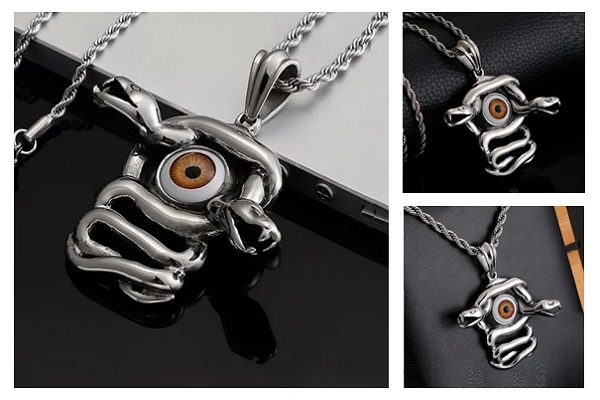 Pingente com Corrente em Aço Inox Olho de Cobra Proteção Mau Olhado Magia Bruxa.