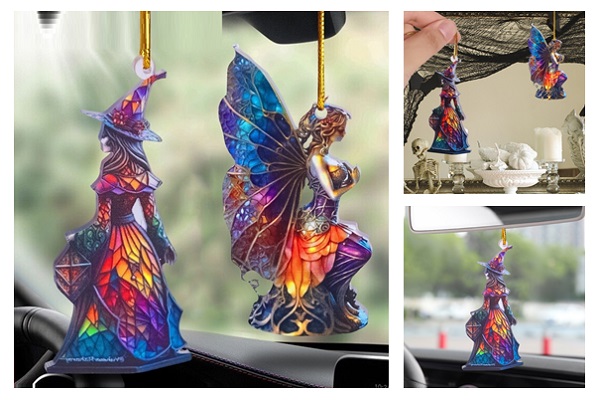 Pingente de Bruxa em Acrílico Feiticeira Linda Decoração de Halloween para Pendurar.